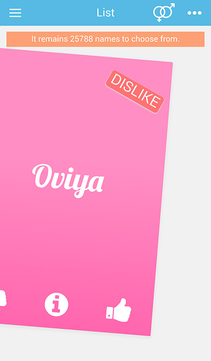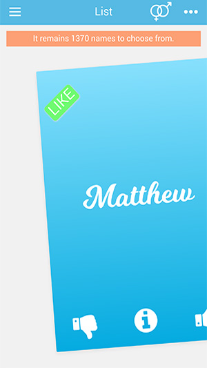 Swipe to the right if you like a name, or swipe left if you don’t.