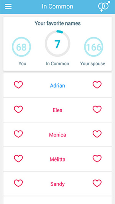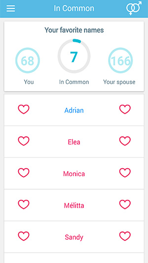 Create your list of favorite names and allow the app to compare it with your spouse's list. No more headaches or endless discussions... Choose THE perfect name from the short list of common names.
