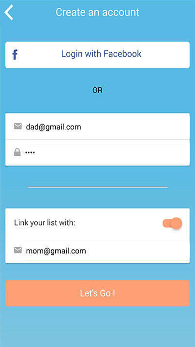 You just need to create an account on your device then write in the setting tab the email address of your spouse. That's all !